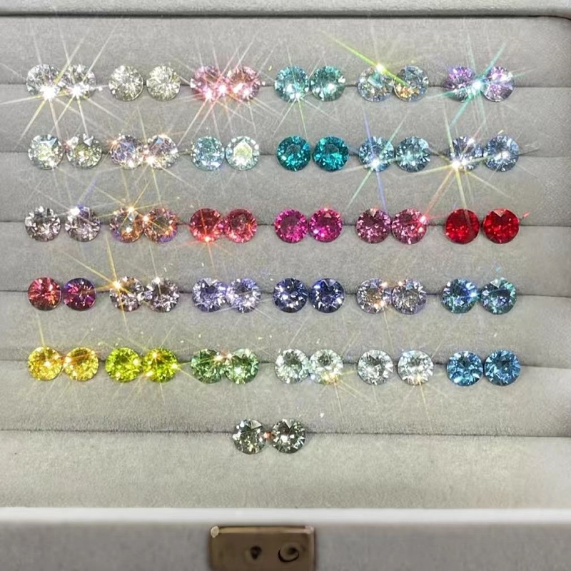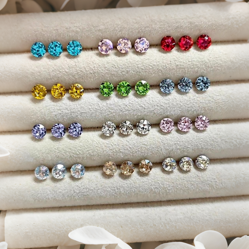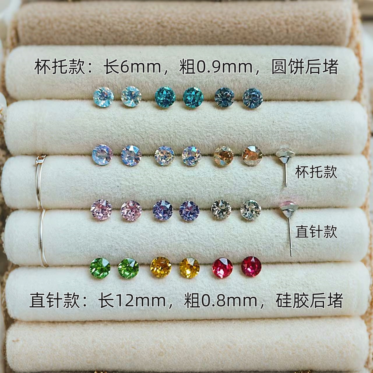 彩色猫眼石银针耳钉套装女夏日圆脸养耳洞耳环小巧精致高级感耳饰