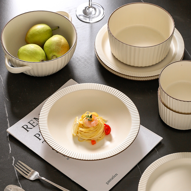 家用高级感陶瓷盘子日式瑞和手绘线条餐具套装深口菜盘精致碗碟子