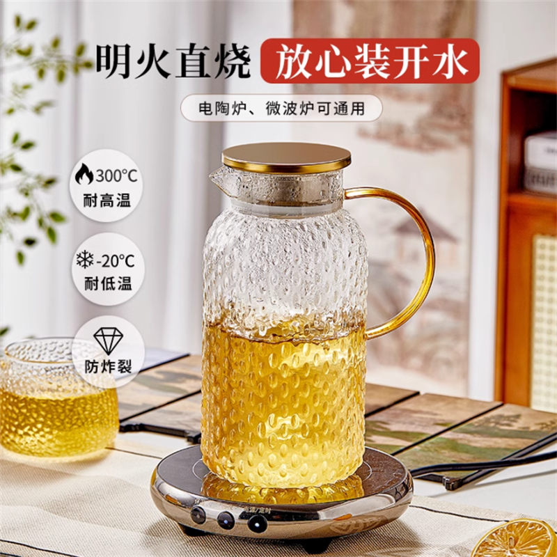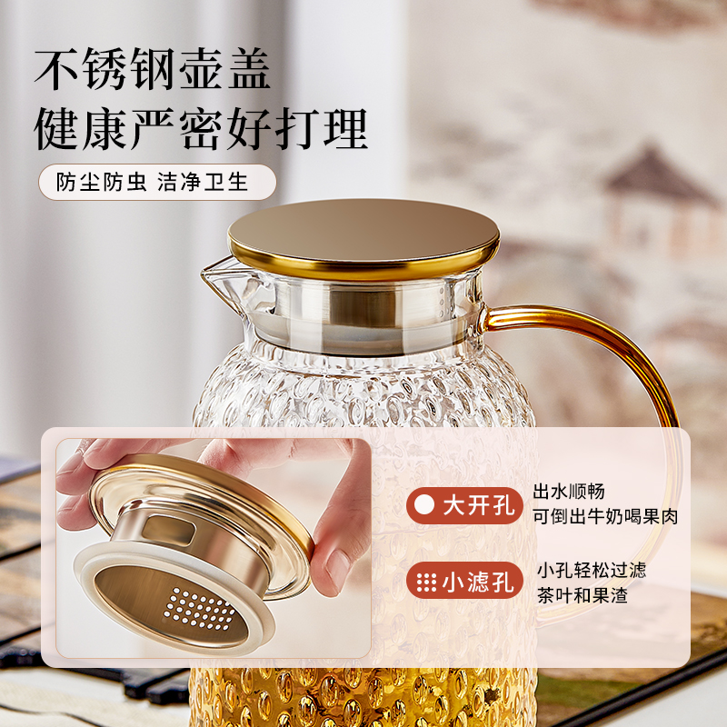 冷水壶凉水壶耐高温家用大容量泡茶壶凉水杯瓶高硼硅玻璃水壶套装