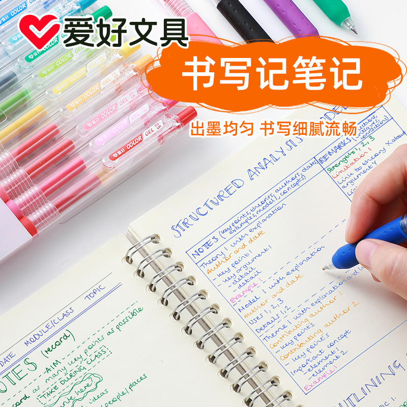 爱好文具 彩色按动中性笔荧光色水笔多色记号笔好看的笔大中小学生女生女孩高颜值做笔记专用套装手账笔gp260