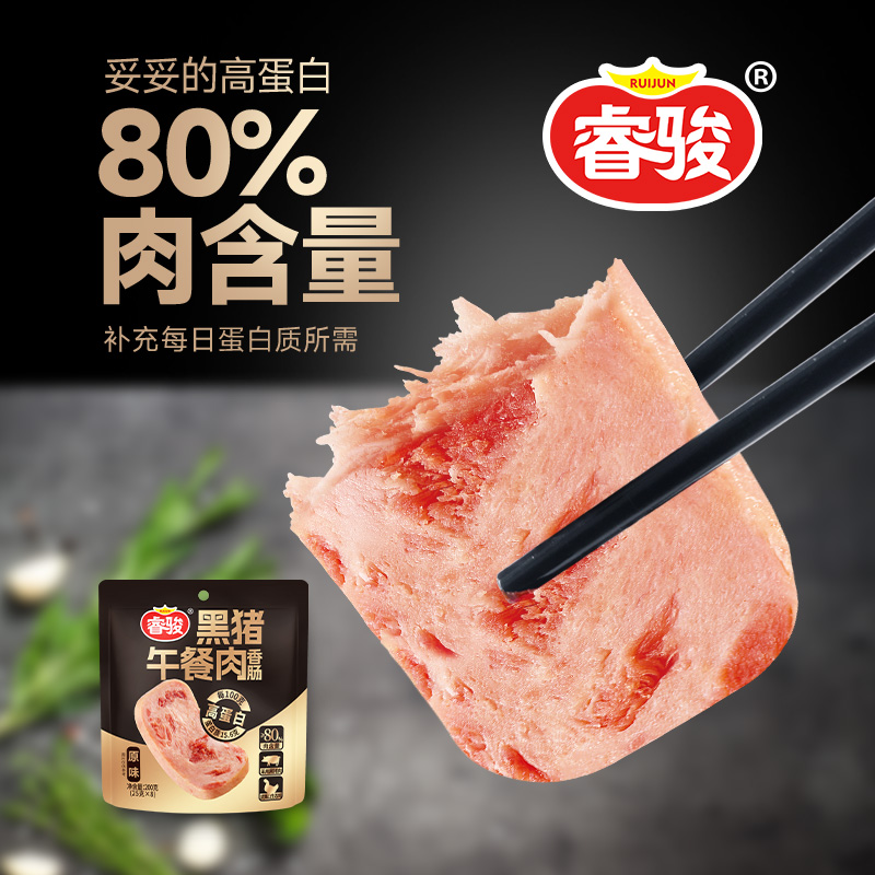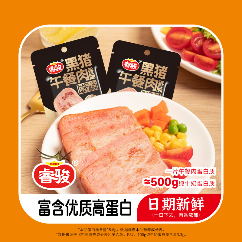 肉敢当黑猪午餐肉软罐头单独包装即食火腿三明治宝宝早餐火锅烧烤
