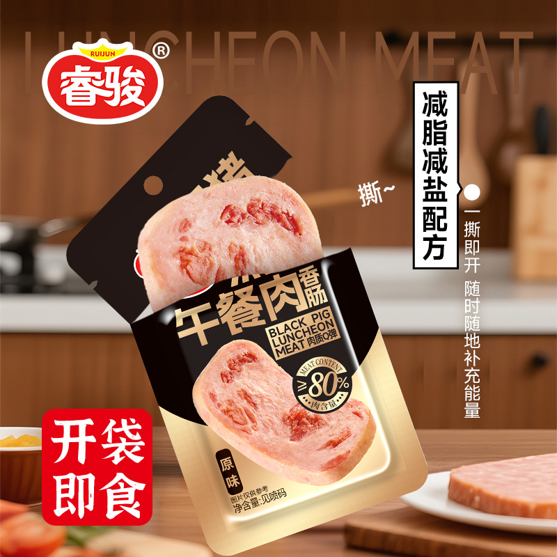 黑猪午餐肉即食火腿单独包装肠早餐三明治专用香肠零食猪肉食物