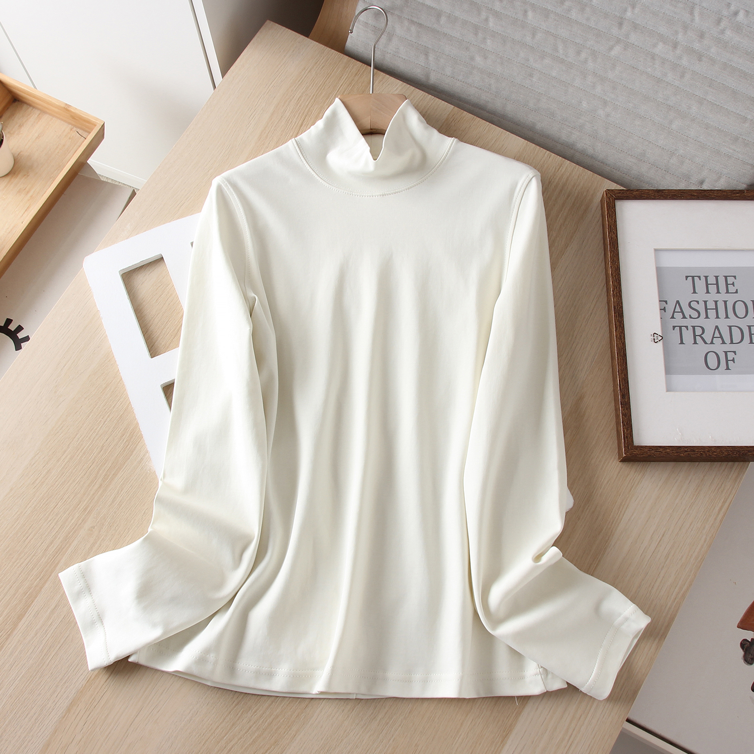 及简气质 休闲大方高领直筒纯色早秋长袖针织T恤女打底衫秋季叠穿