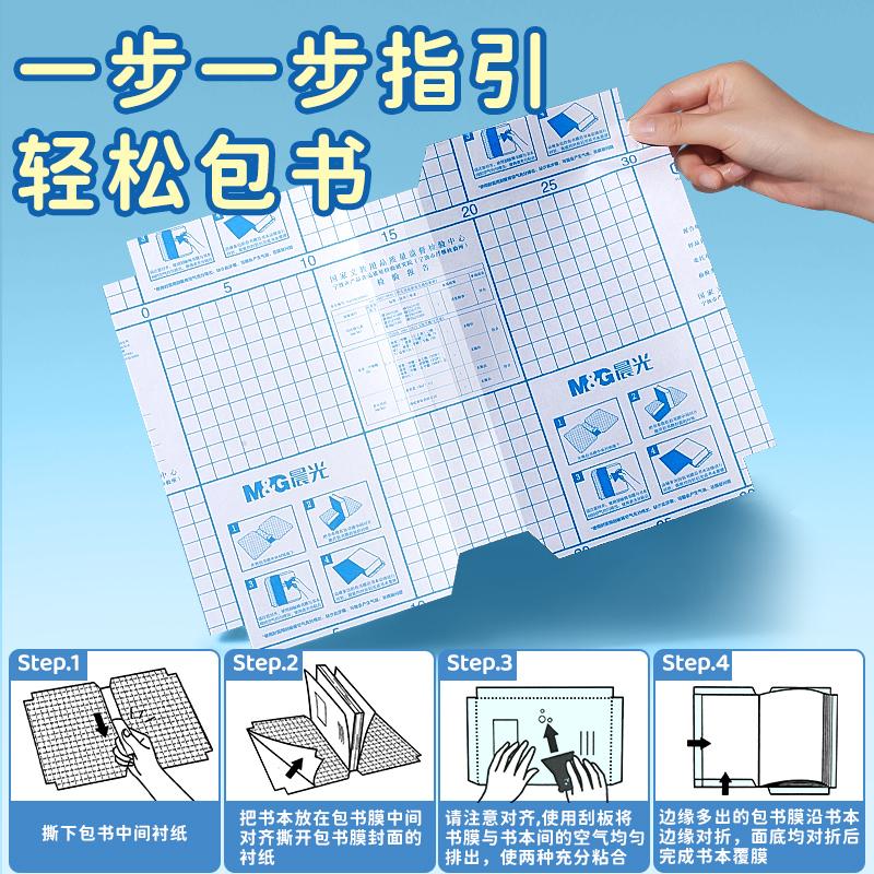 晨光书皮自粘透明磨砂包书皮贴纸书套加厚书膜防水防滑16k书本a4小学生一二三年级下册全套包装纸课本保护套