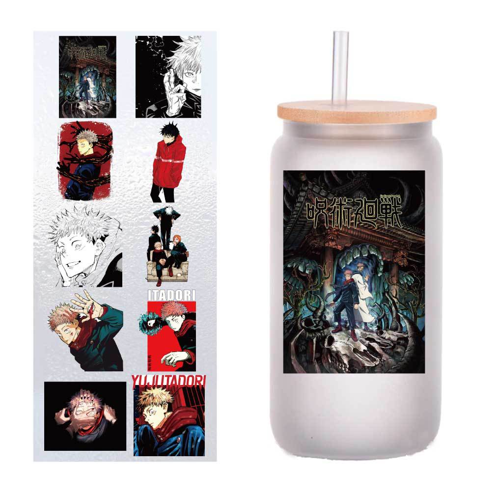 10张四英寸咒术回战虎杖悠仁UV转印贴纸水晶标签笔杯贴纸定制