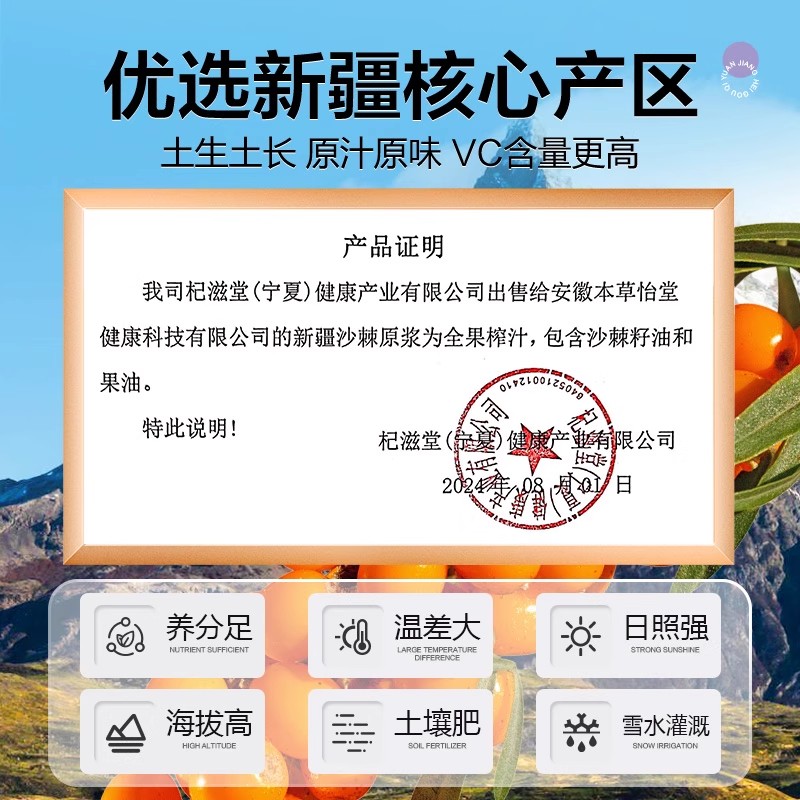 沙棘原浆正品店旗舰沙棘汁新疆100%油果汁生榨VC小果饮料鲜榨原汁