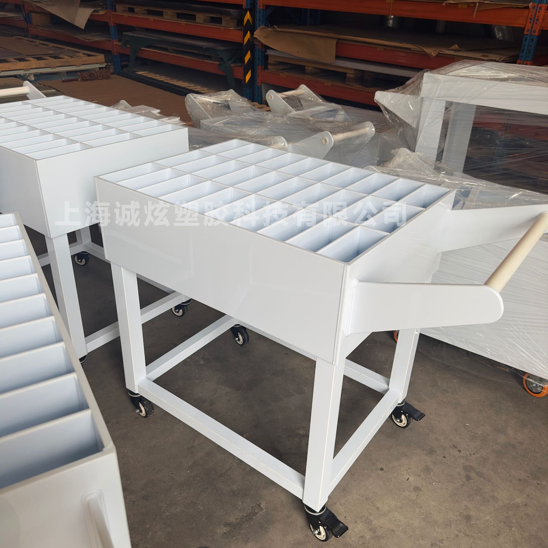 耐酸碱pp推车塑料周转车pp石墨舟推车光伏行业专用绝缘小推车加工