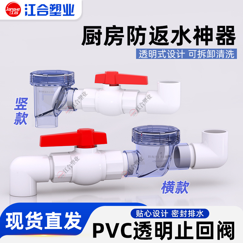 透明止回阀防臭返水倒灌50PVC止逆单向 阀门厨房排水管水槽下水道