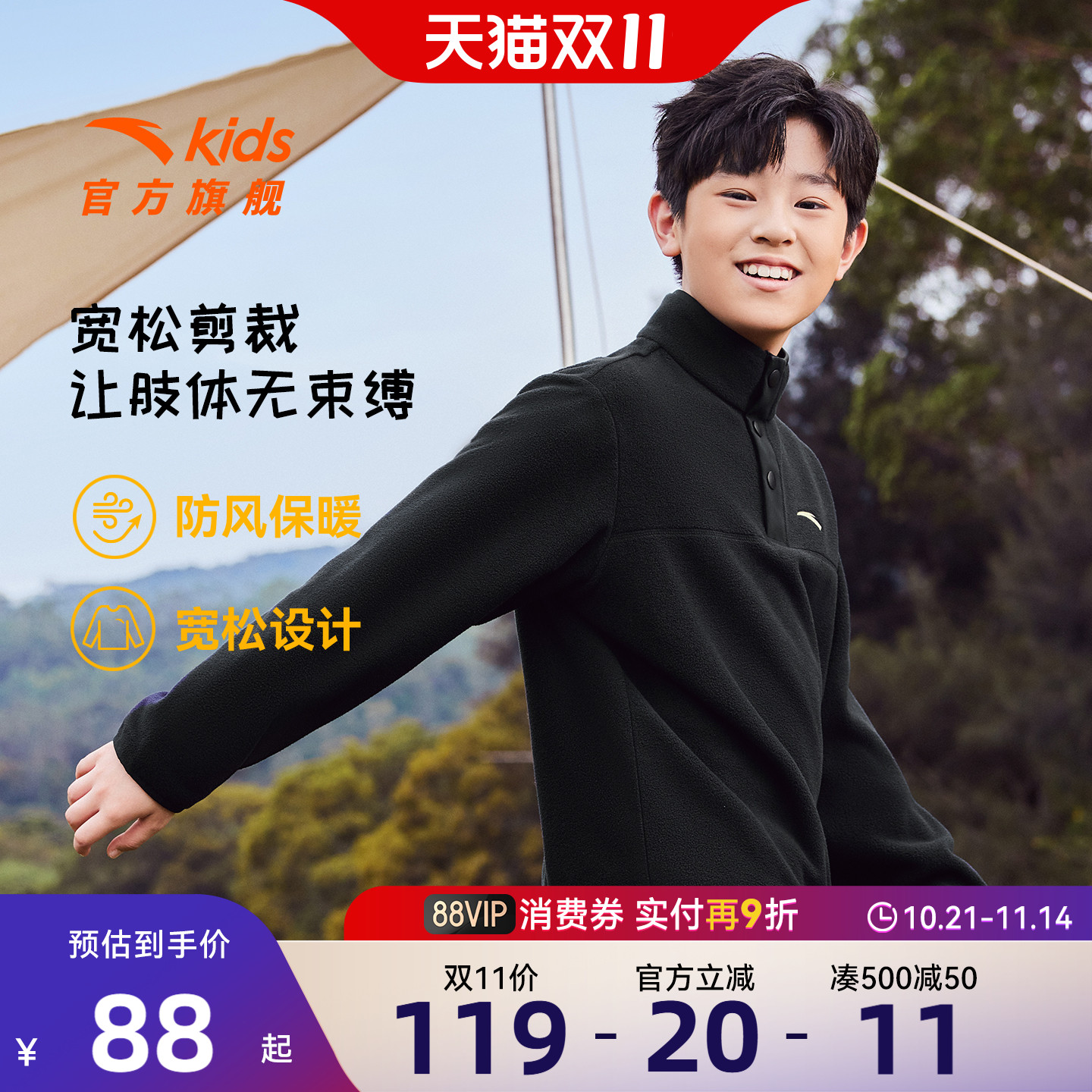 安踏儿童卫衣男童加绒立领套头衫 |2025秋冬大童户外摇粒绒上衣