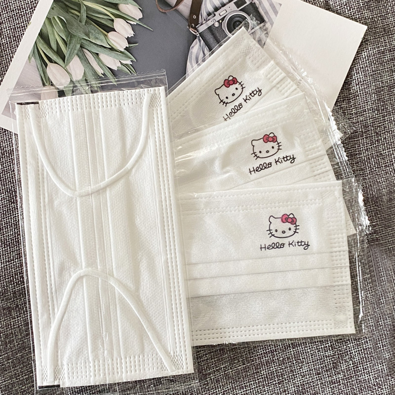 可爱独立包装小猫口罩一次性卡通印花白色女生高颜值凯蒂显白