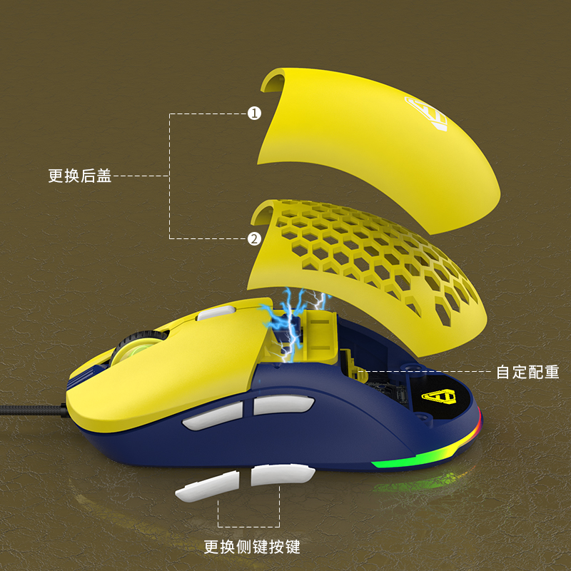 FB/一血F15鼠标小清新配色有线CF/CS电竞游戏RGB宏压枪DIY配重块