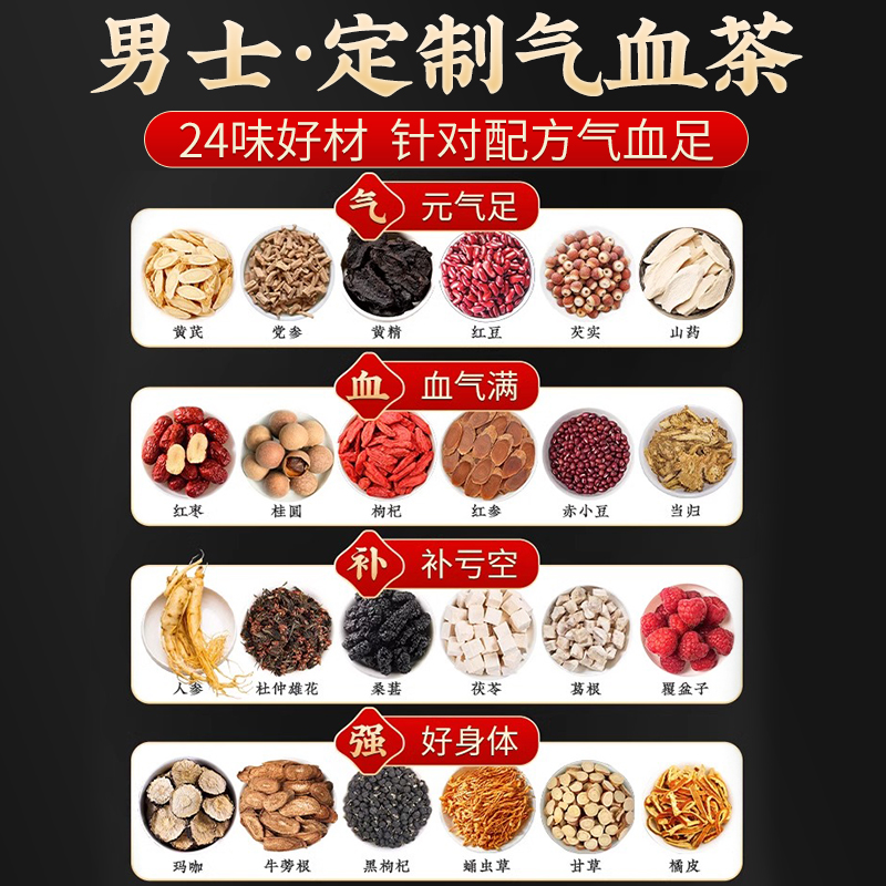 红参黄芪麦冬红枣枸杞茶旗舰店正品养生茶可搭配调理气血产品使用