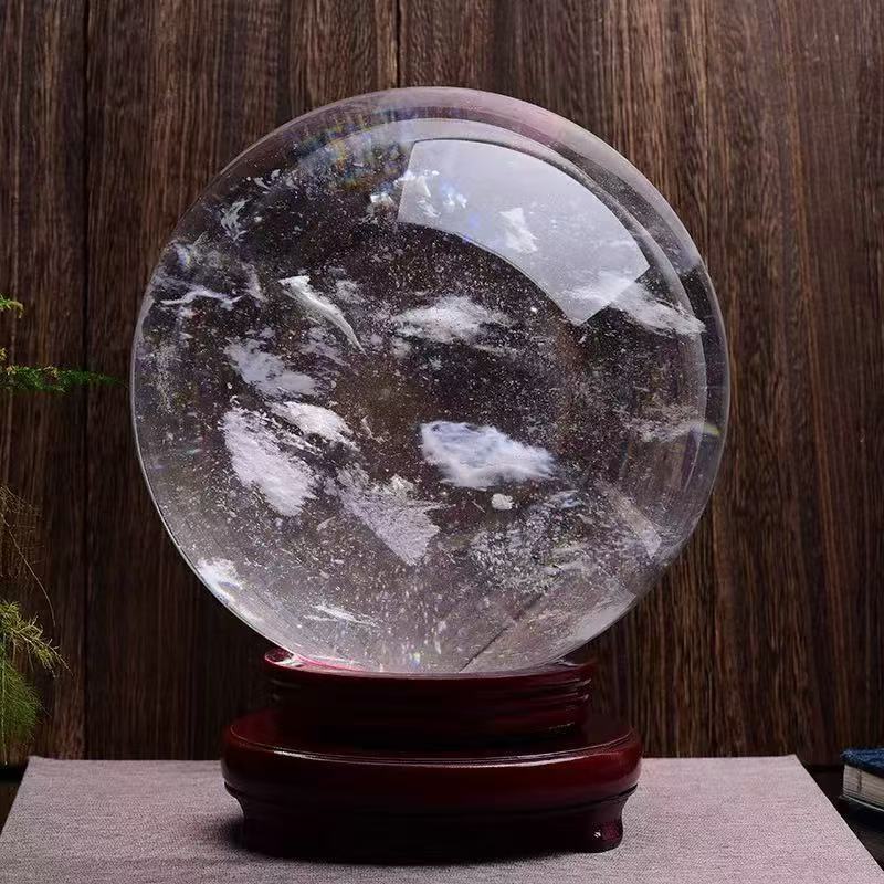 白水晶熔炼球摆件风水球转运球乔迁平安健康家居招财开业送礼底座