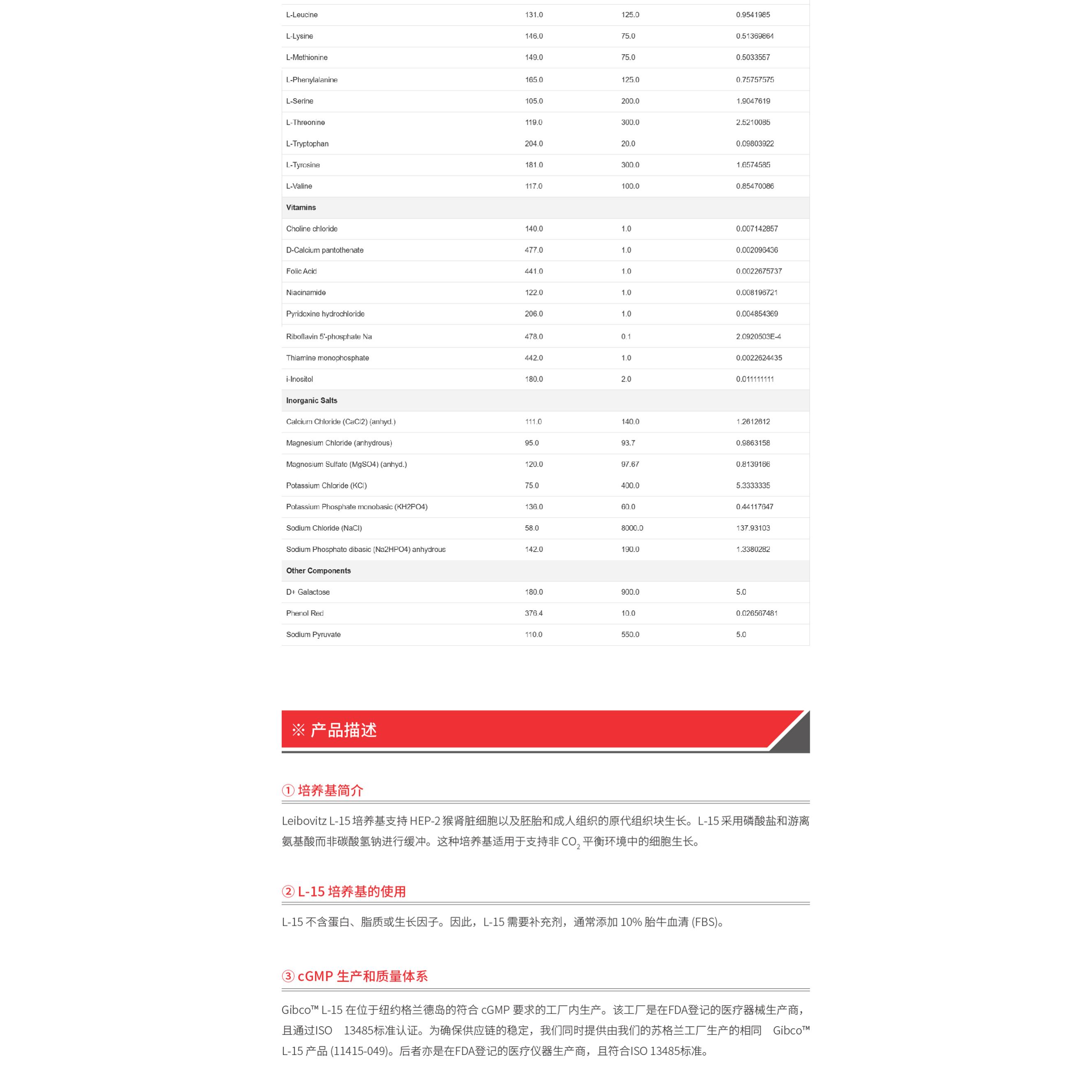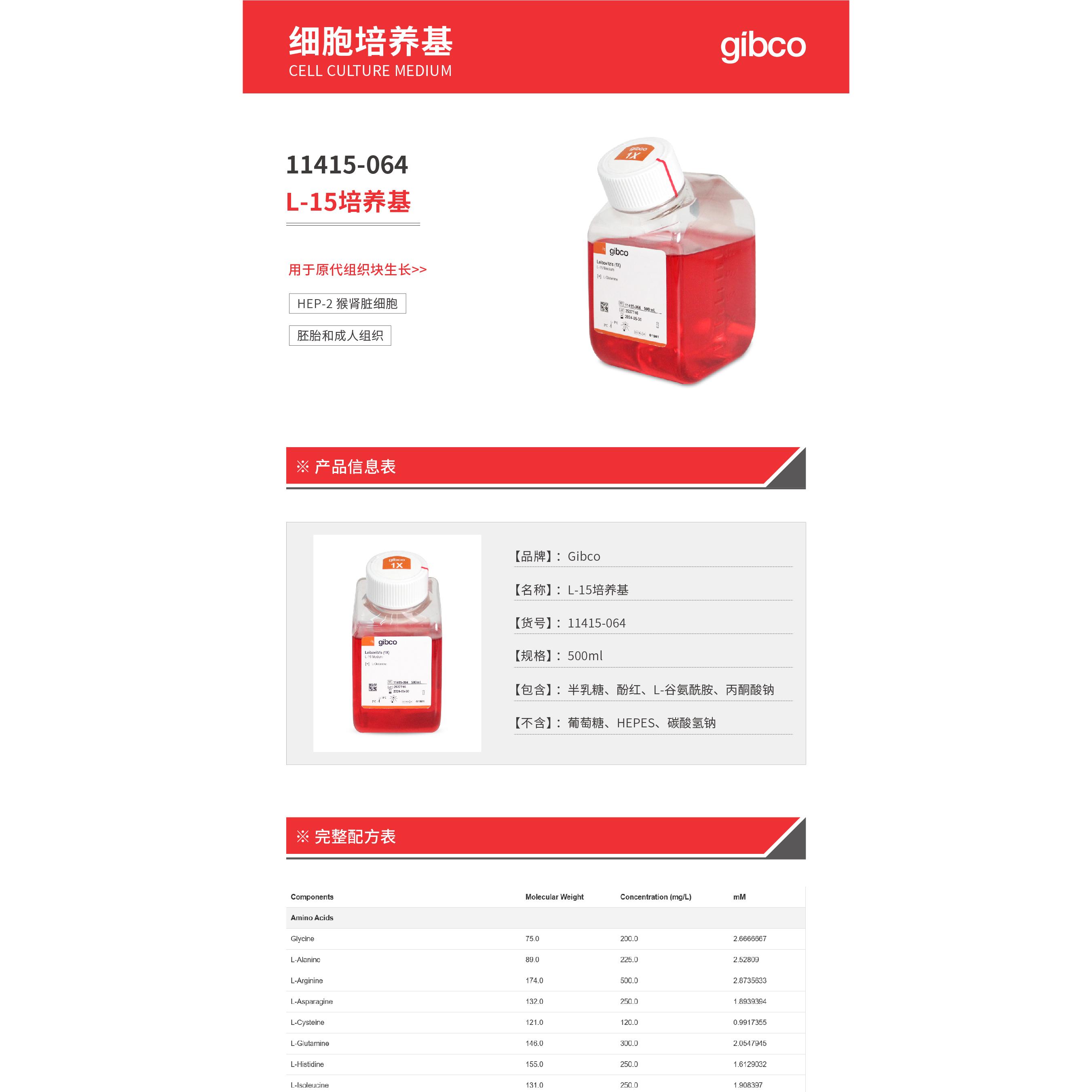11415-064L-15培养基含L-谷氨酰胺丙酮酸不含葡萄糖HEPES碳酸氢钠