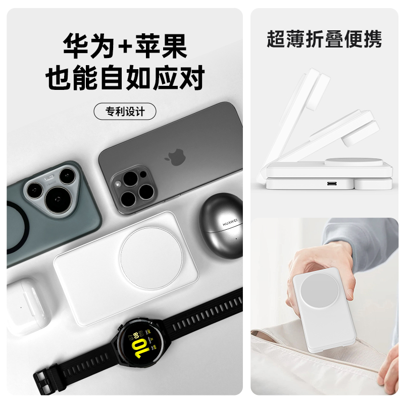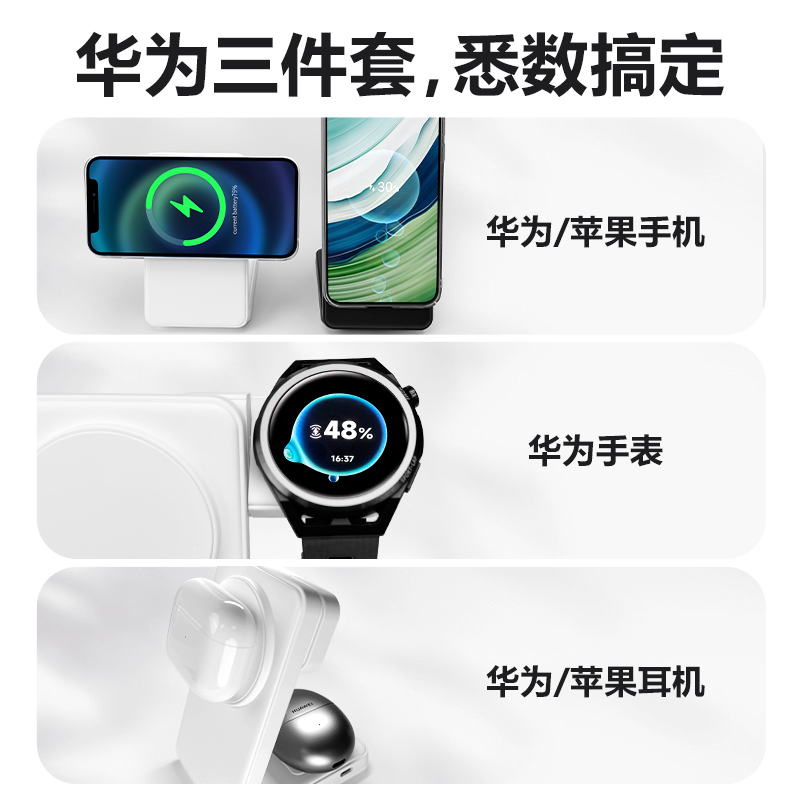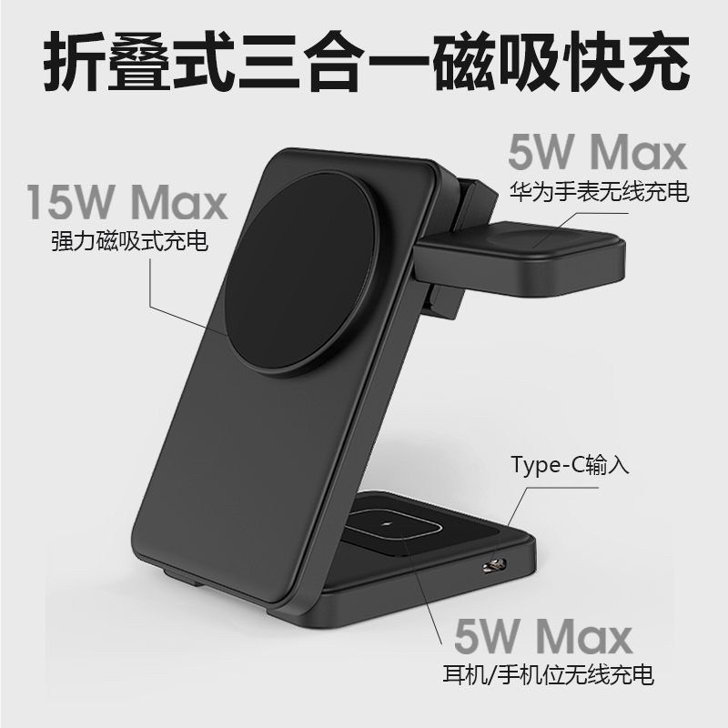 三合一无线充电器磁吸式可折叠适用华为Mate70Pro手机PuraX6荣耀苹果iPhone16耳机GT5手表多功能专用快充支架