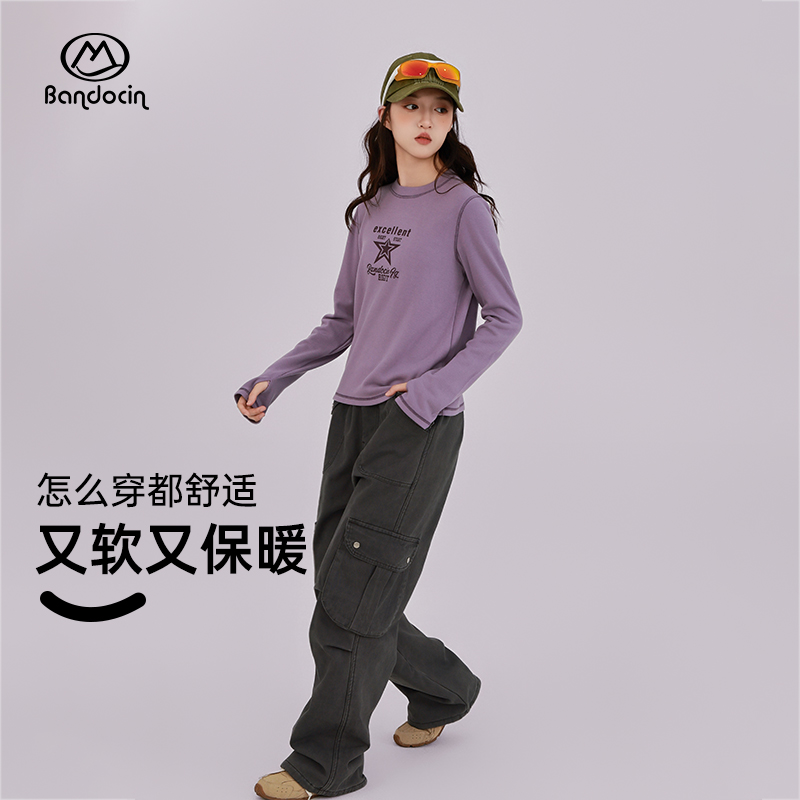 半度闲女大童运动打底衫t恤蓄热秋冬装洋气25新款女孩加厚上衣潮