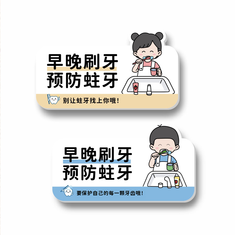 早晚刷牙预防蛀牙男孩女孩贴牌提示牌小朋友认真刷牙提示牌家用