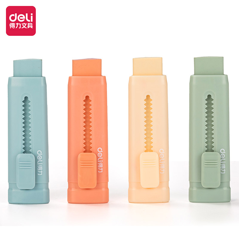 得力推推乐推拉橡皮彩色小学生用橡皮擦不易留痕少屑橡皮擦创意推动伸缩美术绘画铅笔儿童幼儿园三角象皮擦