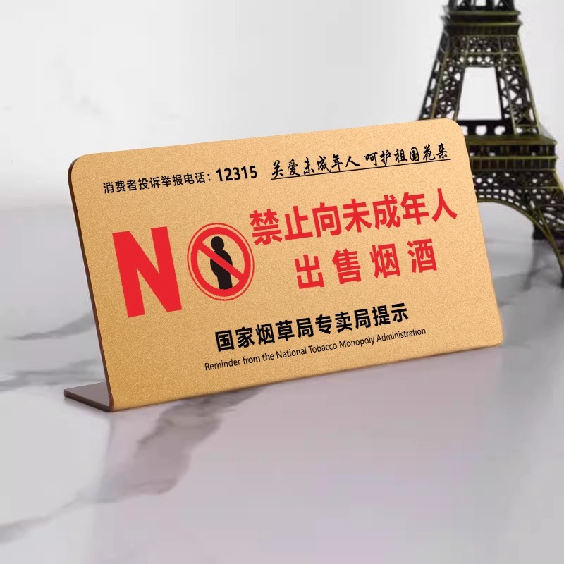 烟酒离柜概不退换提示牌亚克力免开尊口概不赊账温馨提示牌商家店铺现金钞票当面点清禁止向未成年出售烟酒牌