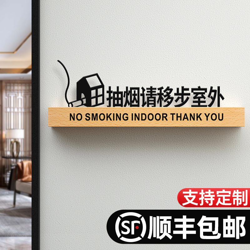 实木抽烟请移步室外禁止吸烟提示牌亚克力标牌指示贴门牌定制请勿