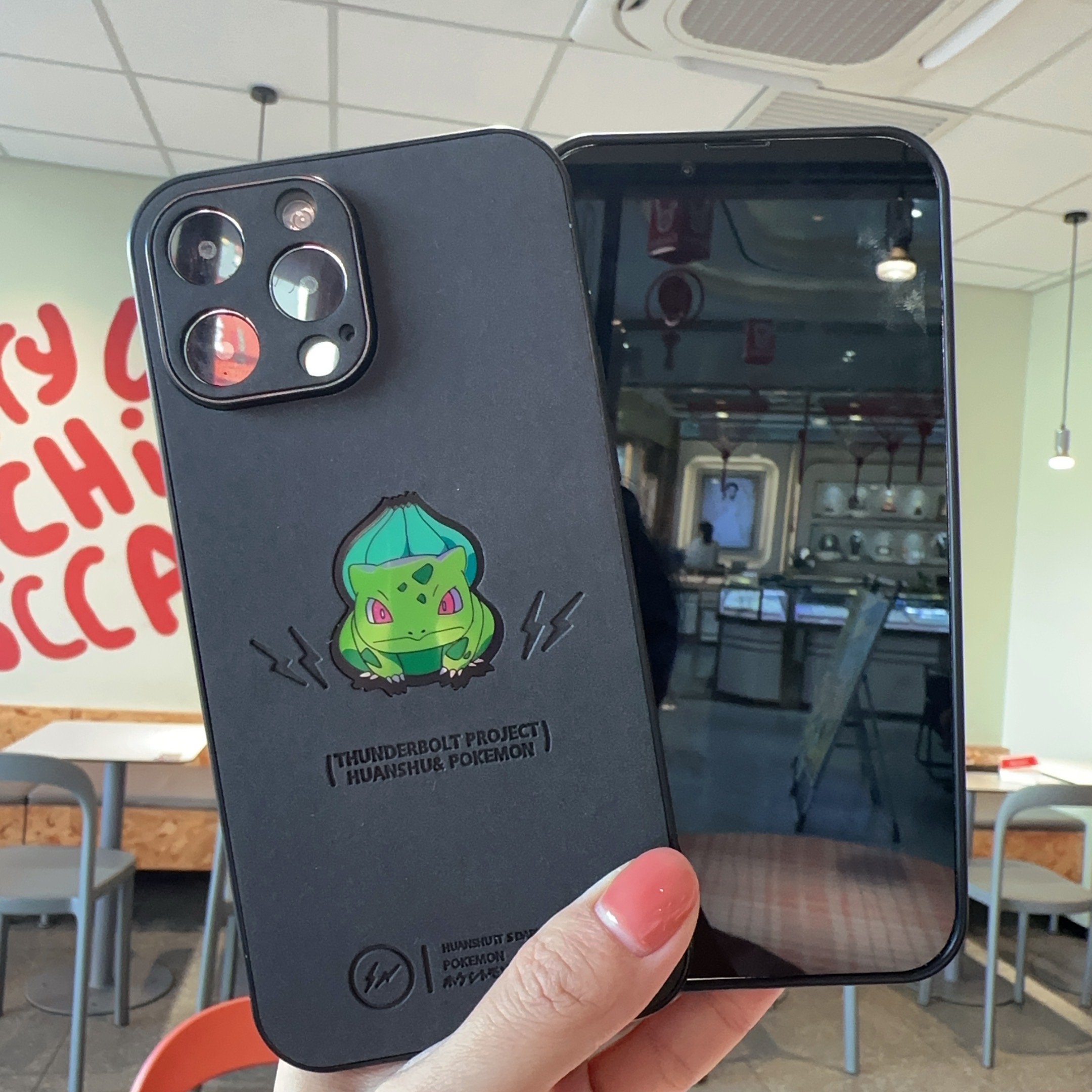宝可梦卡通镭射妙娃种子潮牌适用苹果16ProMax手机壳iPhone17新款14软壳翻毛皮13小众高级感15全包磨砂16外壳
