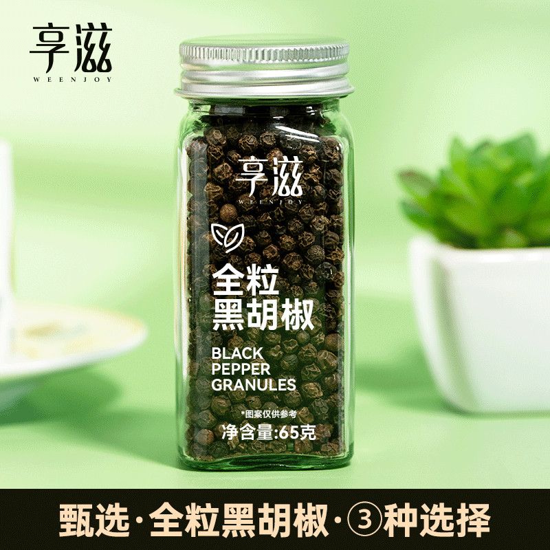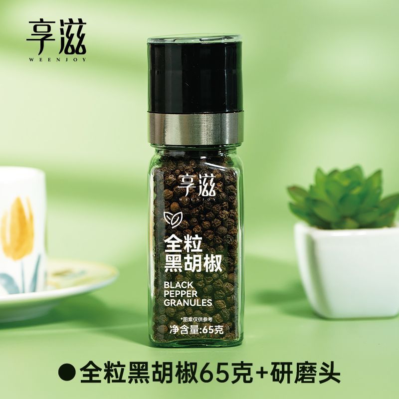 享滋·黑胡椒甄选全粒黑胡椒带研磨头可研磨黑胡椒袋装玻璃瓶装组