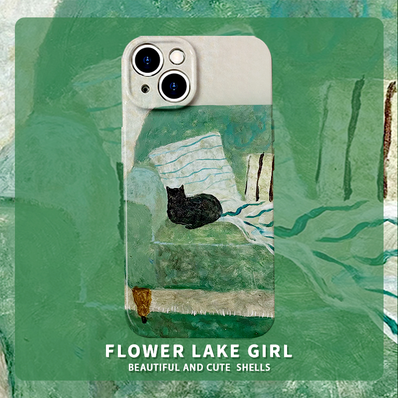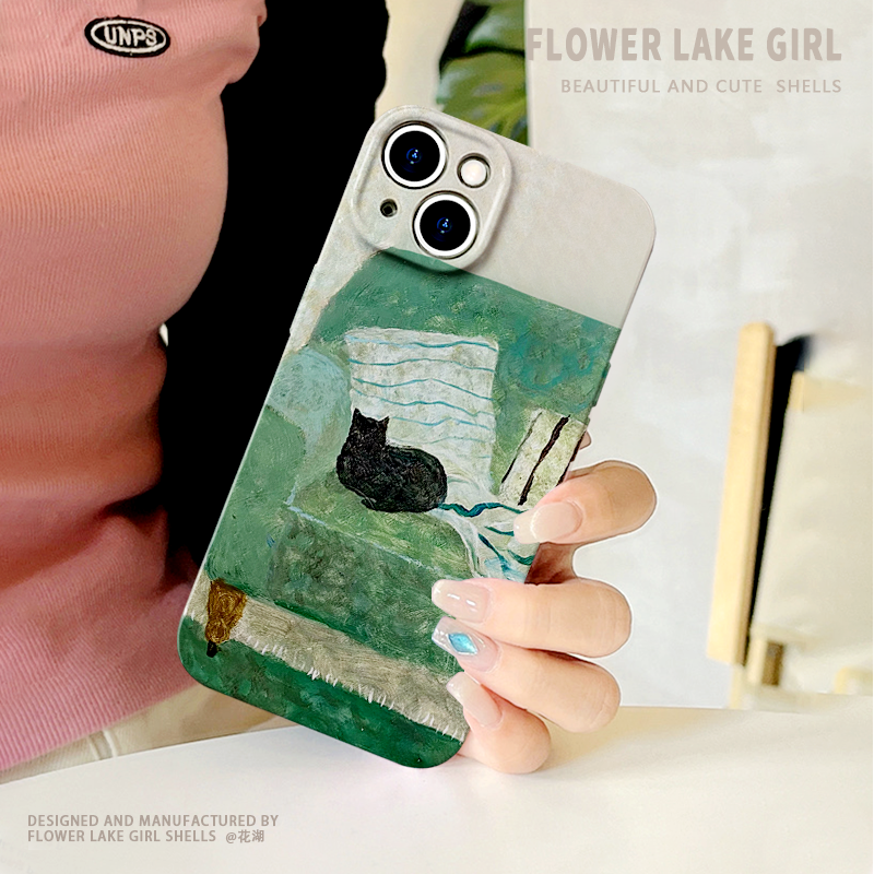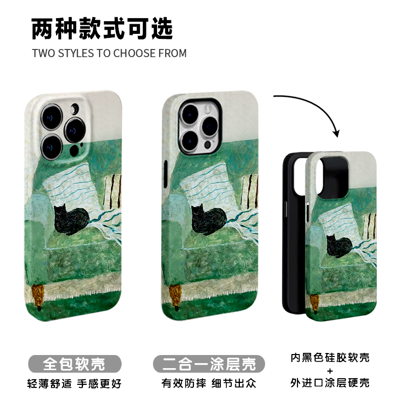 窝在沙发里~草绿涂鸦猫咪适用iPhone16/15promax手机壳华为mate60pro软OPPOreon9苹果14/13vivoX200一加ACE3V
