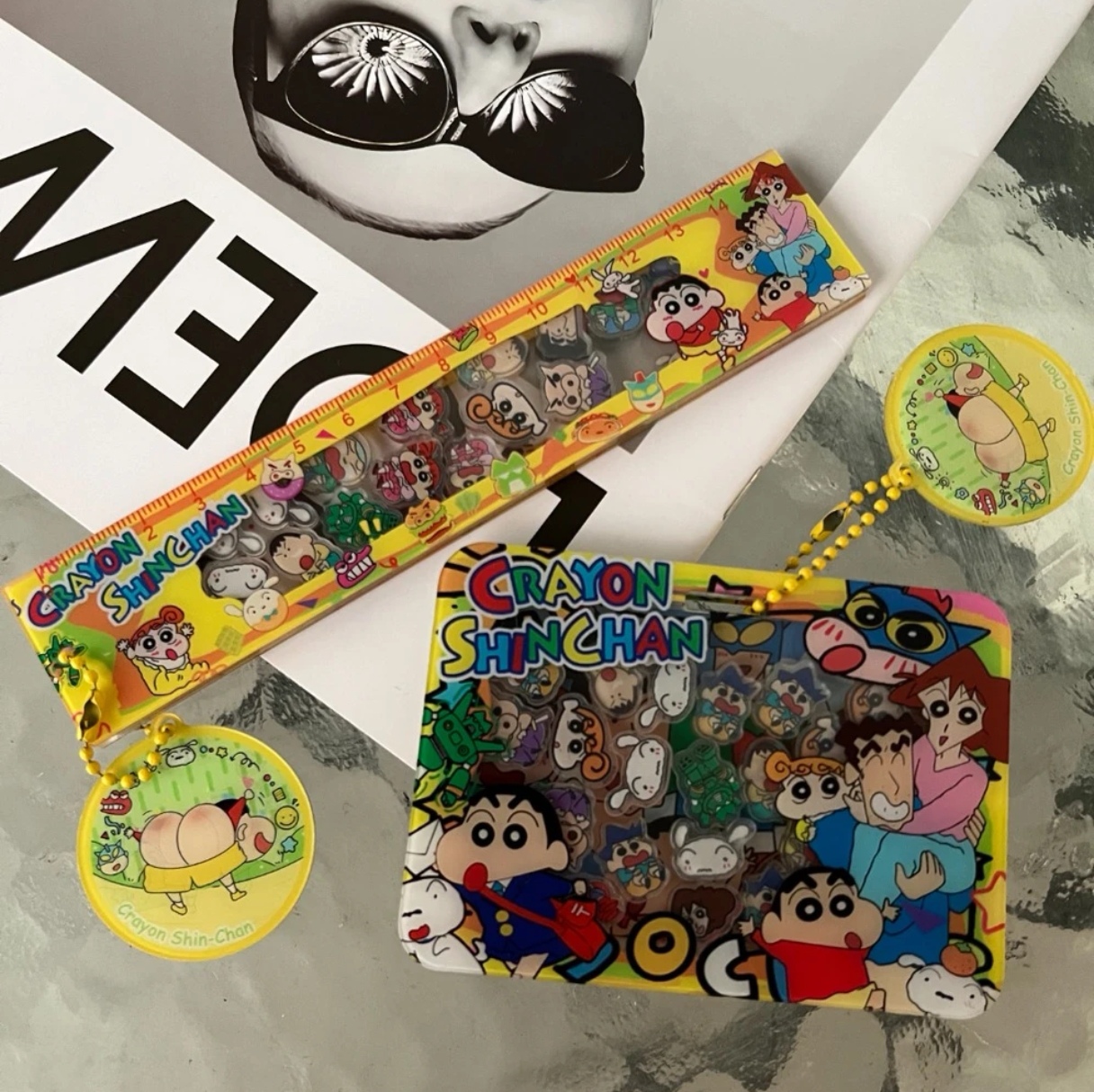 可爱蜡笔小新身份证卡套亚克力证件套学生可爱摇摇乐尺子卡套套装