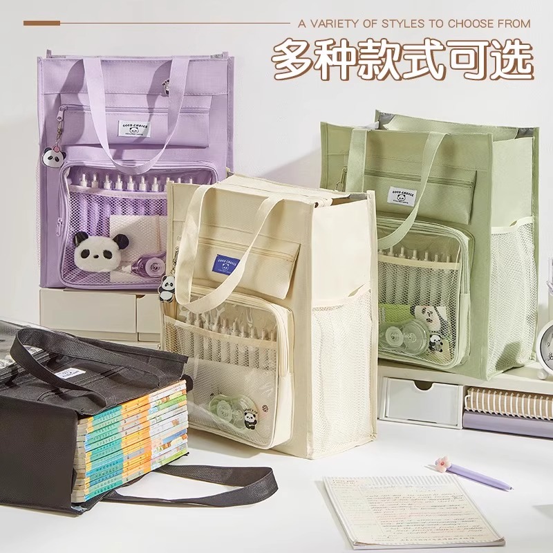 学生手提书包补习手提袋学生拎书袋女小学生手提包作业文件袋袋子大容量帆布袋装书补课包学习拉链痛包美术袋