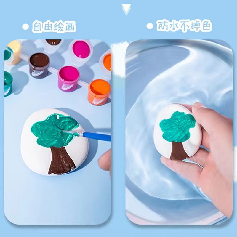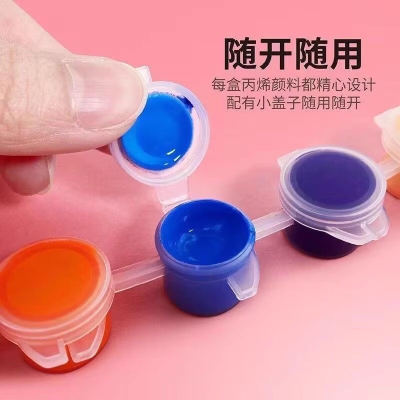 彩色丙烯颜料条便携画画3毫升12色袋装连体套装送画笔涂色防水6色石膏娃娃diy涂色颜料