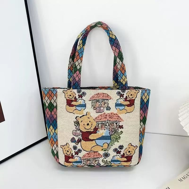 2025通菱格手提包女双面刺绣包时尚百搭上班手拎便当包