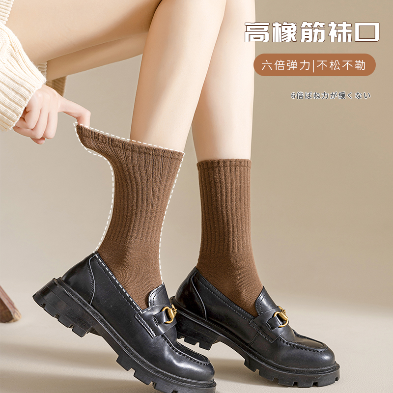 袜子女秋冬季纯色中筒袜无骨堆堆袜纯棉长筒袜搭配玛丽珍长绒棉
