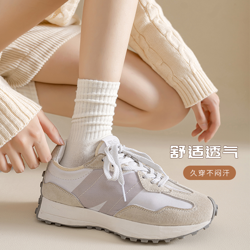 袜子女款纯棉中筒袜秋冬季抗菌防臭吸汗运动棉袜春秋款无骨短筒袜