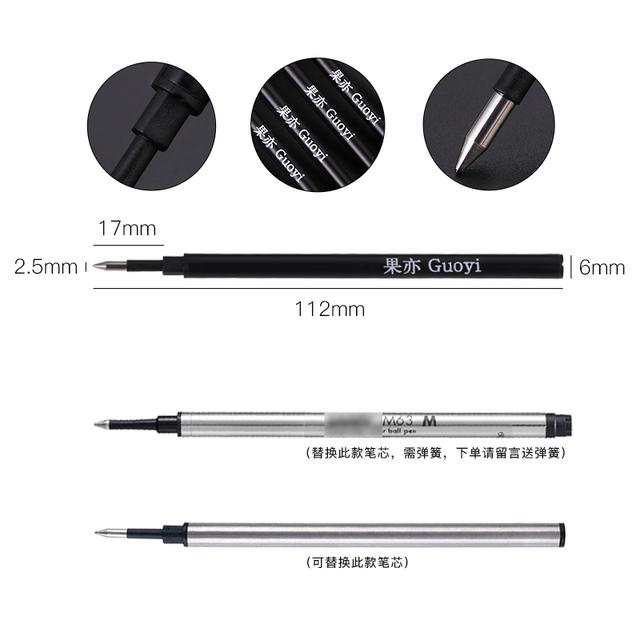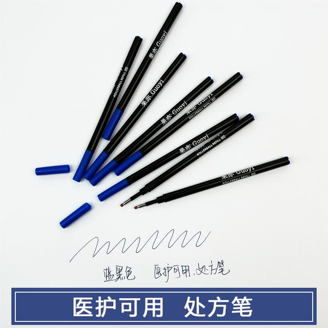 Guoyi/果亦替芯0.50.7中性黑色直插式签字笔蓝黑色医护处方可用