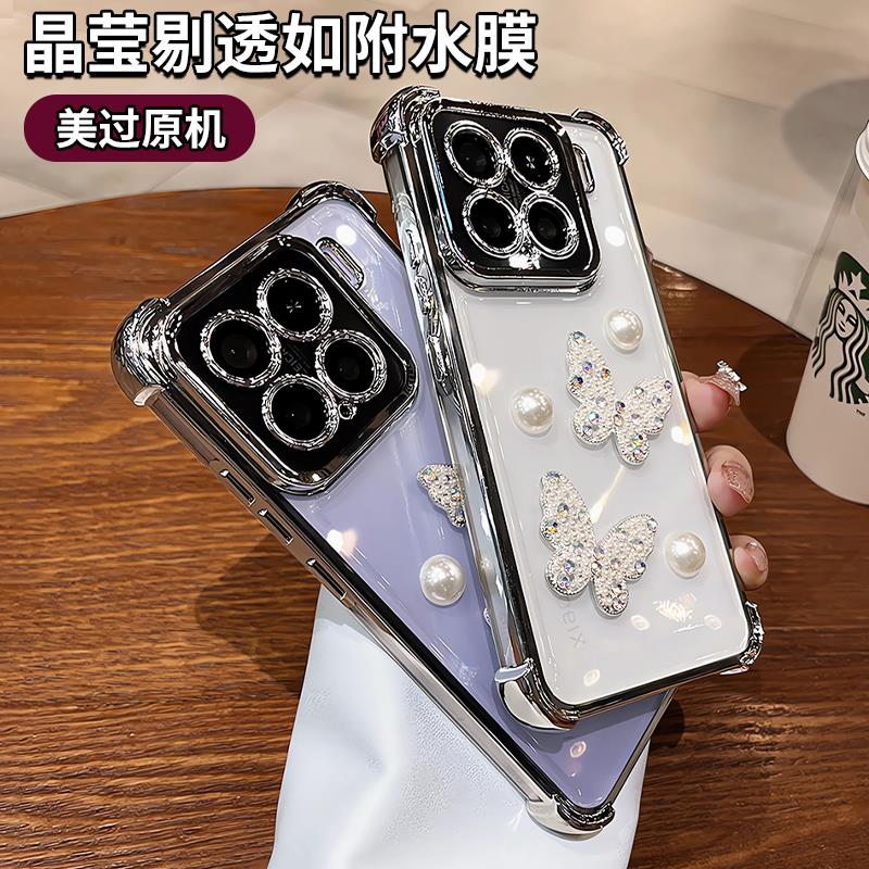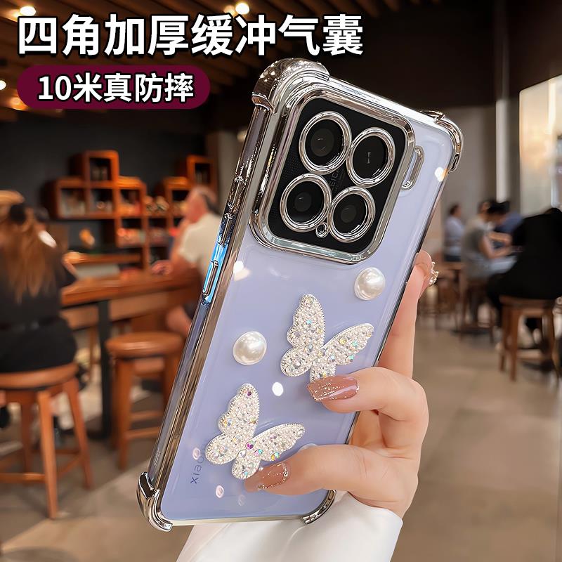 立体蝴蝶珍珠适用小米15手机壳新款小米14气囊防摔13pro镜头全包12s高级感12x硅胶不泛黄保护套天玑版女款