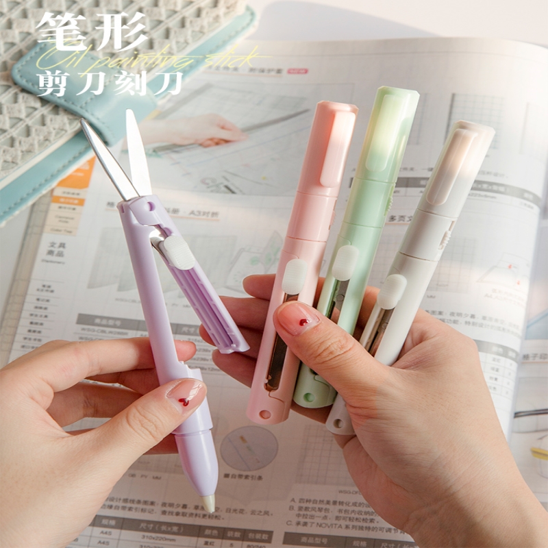 剪刀刻刀二合一刻纸刀儿童剪刀安全手工小型便携式折叠裁纸笔刀