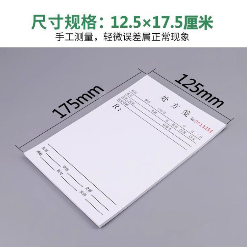 现货通用处方笺医用36开签单本社区卫生院诊所处方纸流水编码书写顺畅不渗墨无线胶装工艺撕下不留痕方便快捷