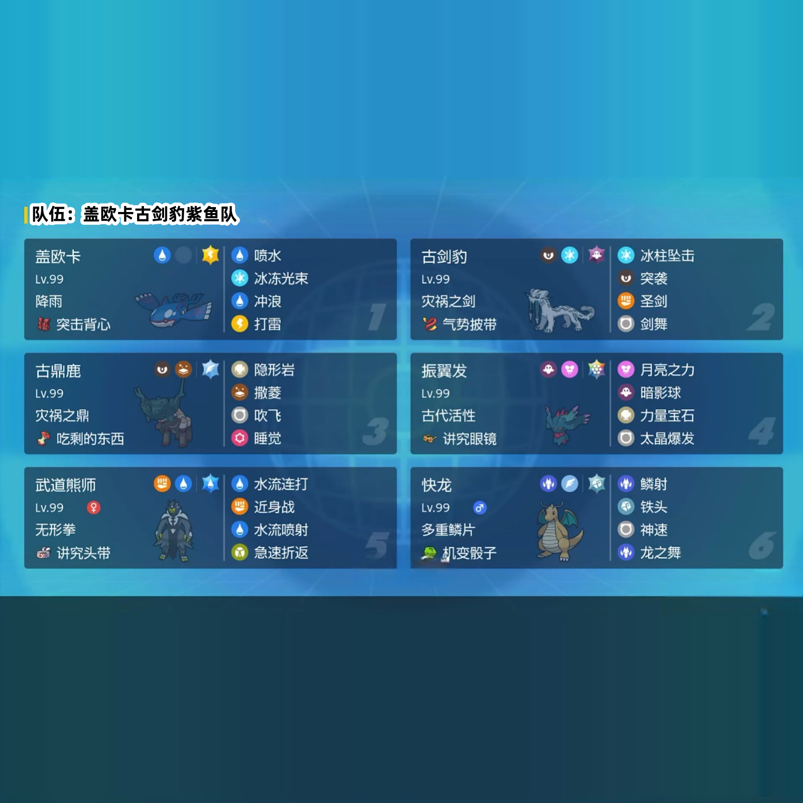 switch宝可梦朱紫规则I单打队伍盖欧卡古剑豹紫鱼队6元一队