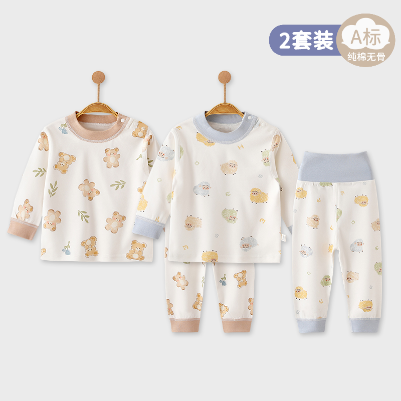 婴儿上衣秋衣纯棉无骨秋冬分体套装高腰护肚男女宝宝内穿打底睡衣