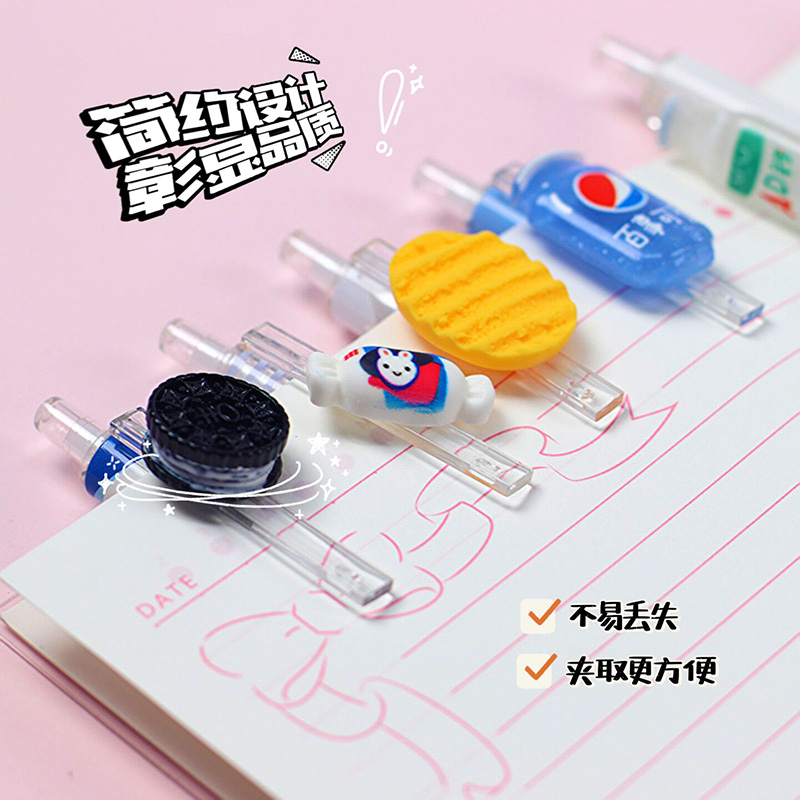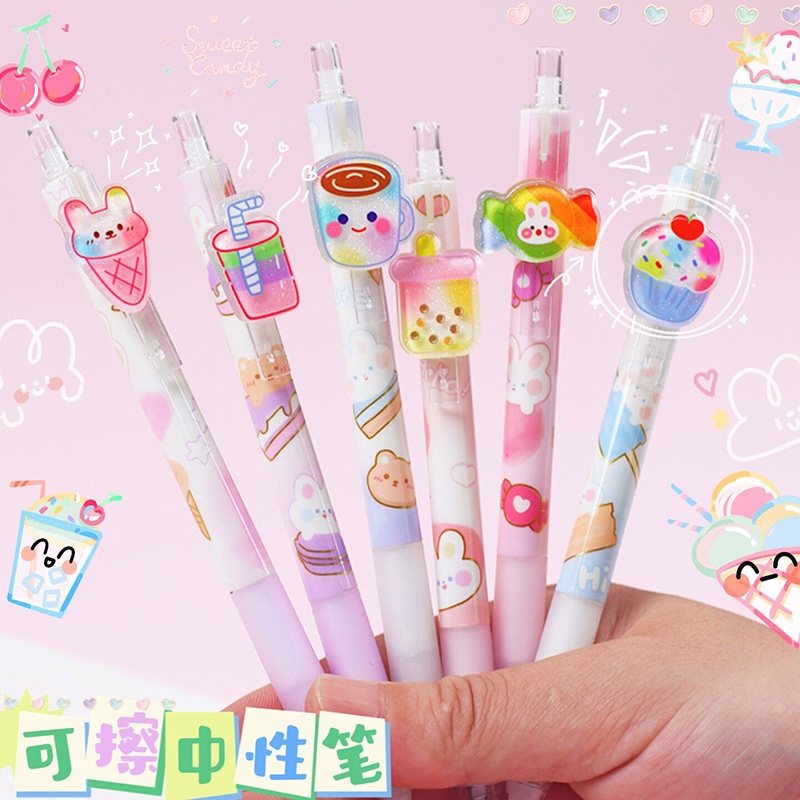 小零食按动热敏可擦蓝色中性笔高颜值黑笔ins日系刷题笔st头速干顺滑可爱按动水笔奶茶饮料魔力热可易消水笔