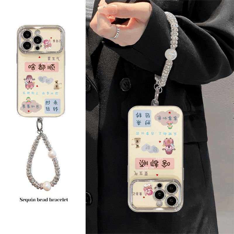 适用苹果16promax手机壳新款财神啥都顺iphone15pro高级感镜头全包防摔保护套14网红卡通可爱创意文字个性女
