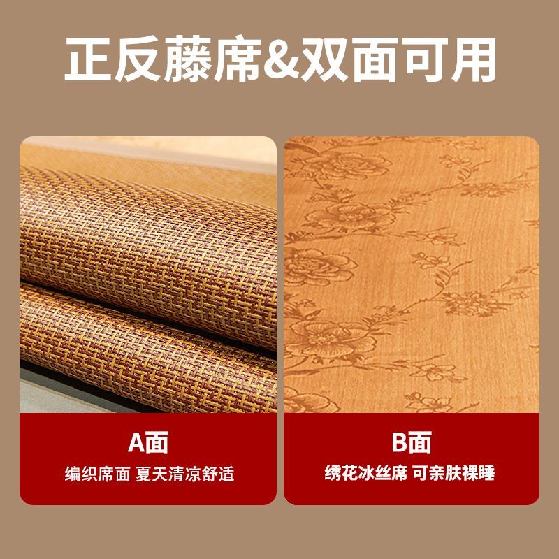 夏季凉席冰丝藤席家用双人床可折叠空调草席子老式冬夏两用天然软