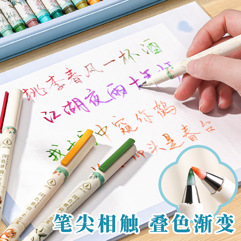 咔巴熊柔绘笔秀丽笔彩色勾线笔描线笔极细软头练字书法签字笔美术