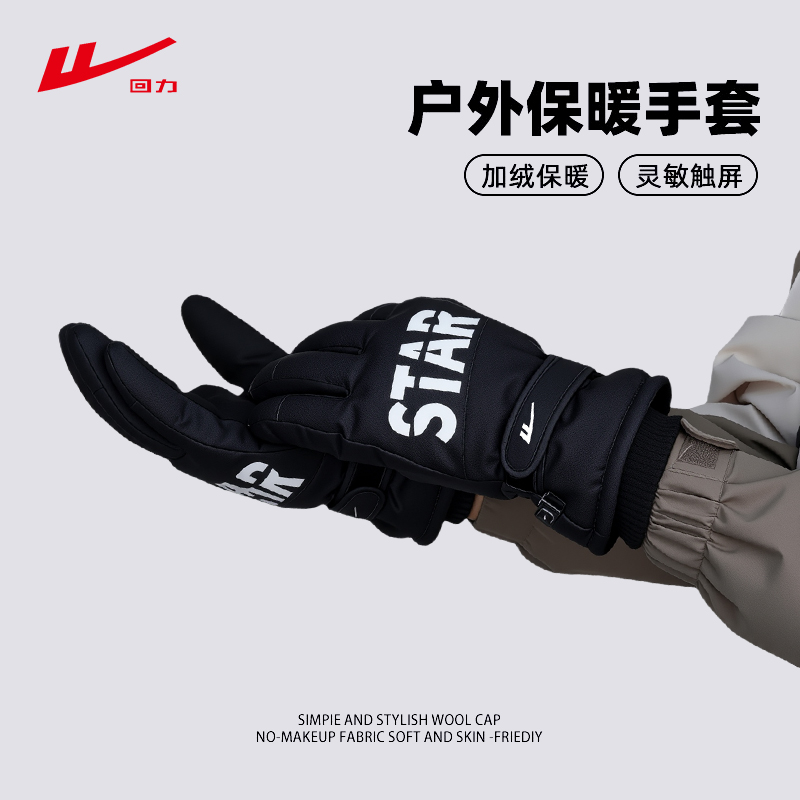 回力滑雪手套冬保暖防寒男骑行可触屏女加绒加厚防风防水骑车薄绒