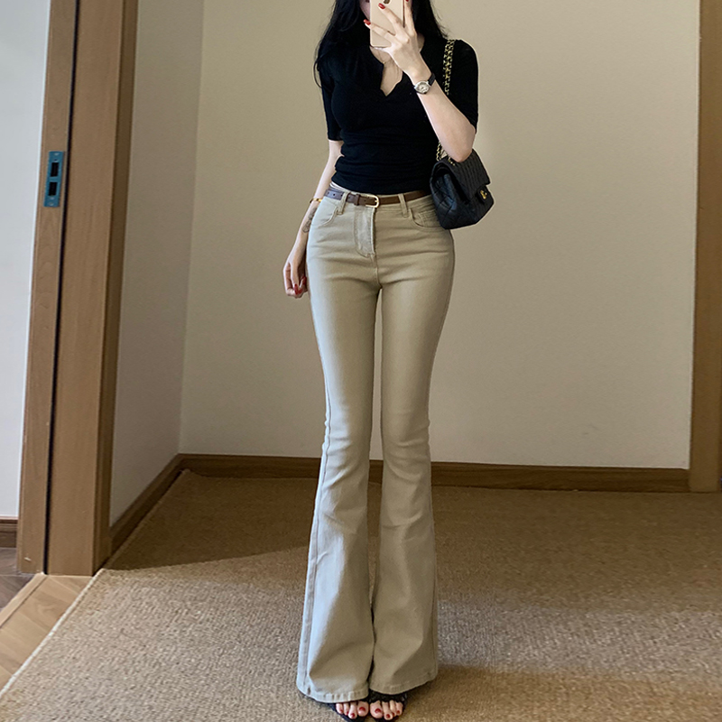 李李服饰老钱风复古卡其色简约微喇牛仔裤女2025早秋高腰显瘦长裤