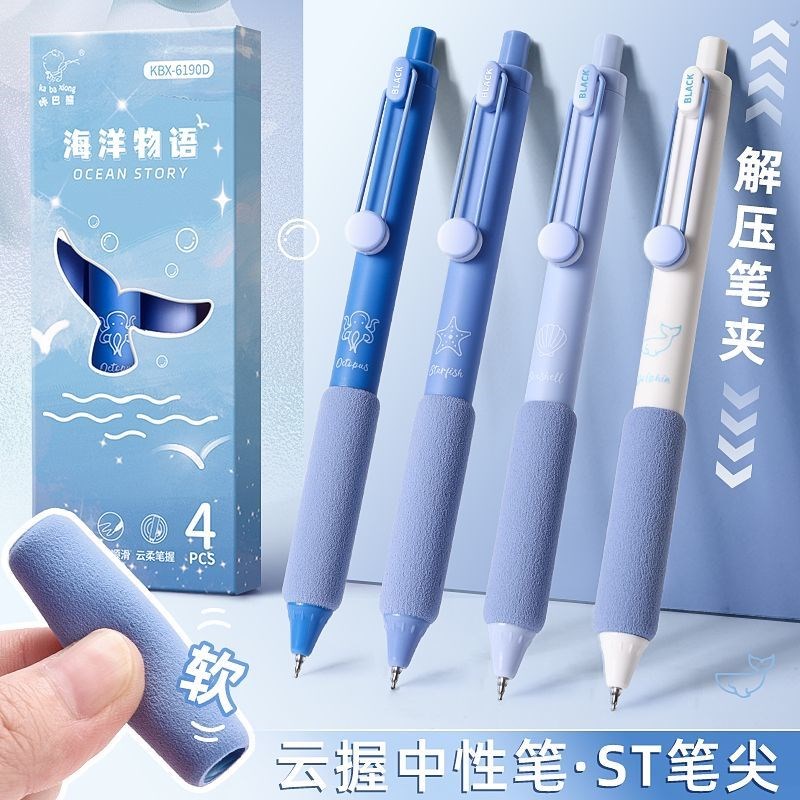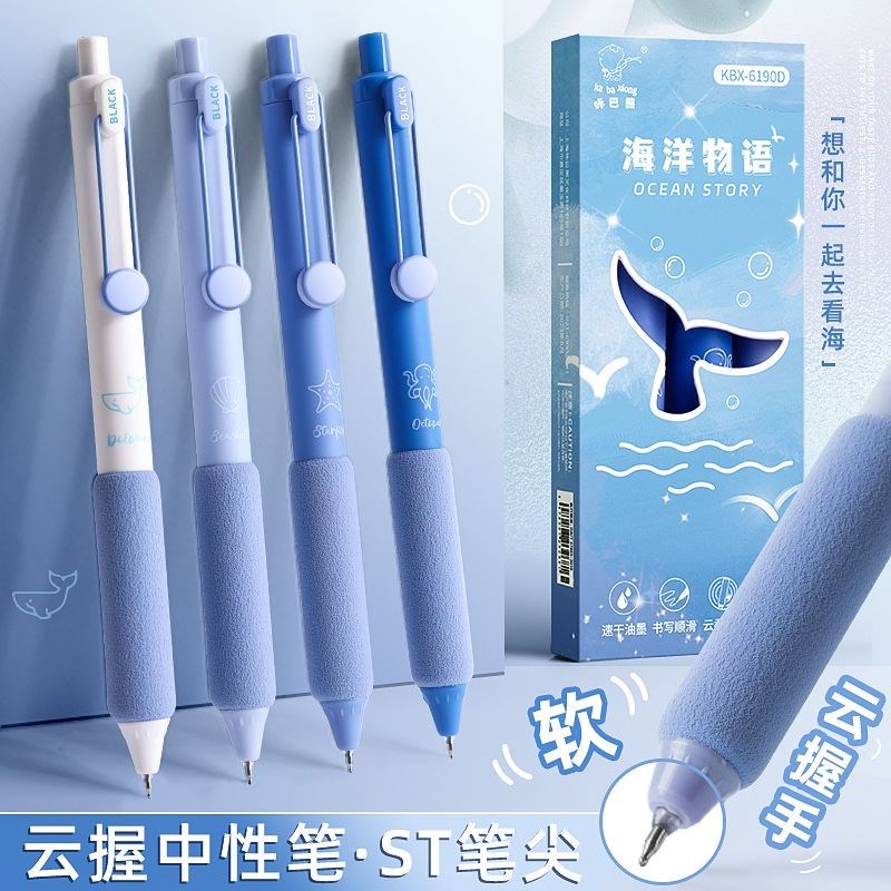 速发海洋物语欧包笔高颜值刷题笔速干按动中性笔ST初高中生用0.5