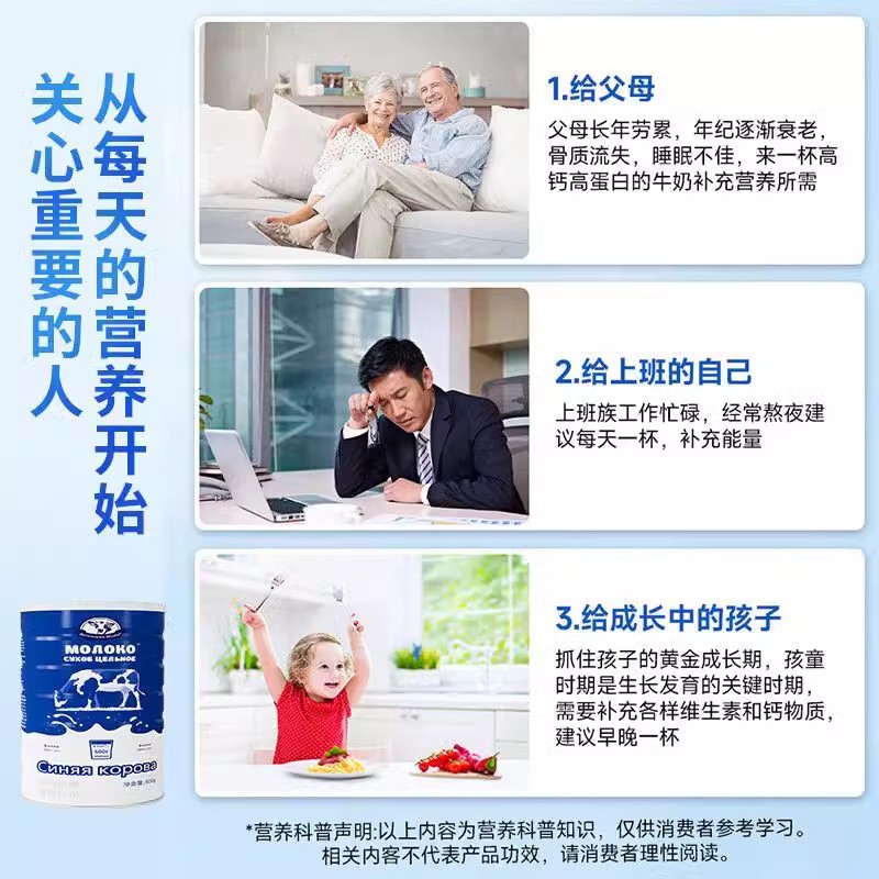 俄罗斯奶粉原装高钙全脂蓝牛进口奶源成人中老年无蔗糖官方旗舰店