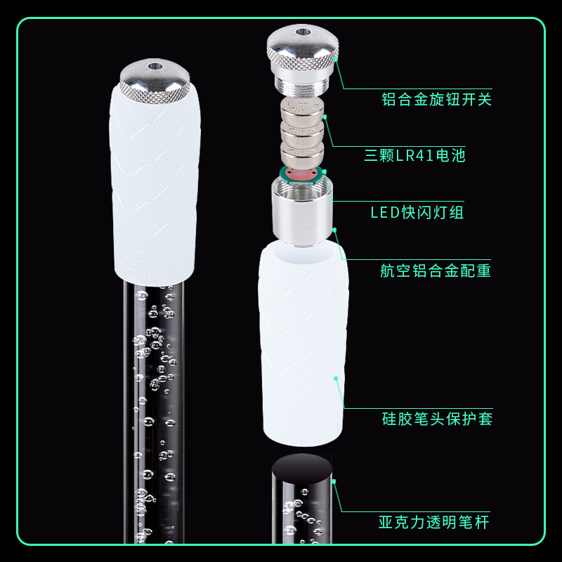 转笔者七彩发光转转笔亚克力高透笔杆LED芯片灯合金头抖音同款七彩炫酷初学者新手不可书写减压旋转专用转笔