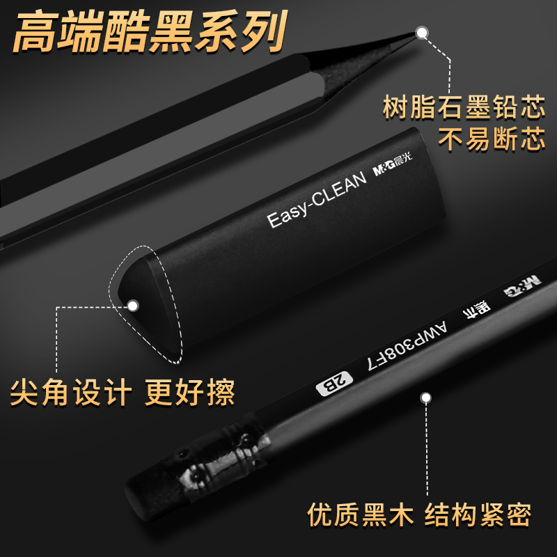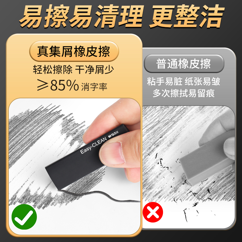 晨光三角橡皮擦小学生专用无屑巨干净不留痕擦字成线幼儿园一二年级儿童黑色铅笔擦无毒不掉聚屑文具学习用品