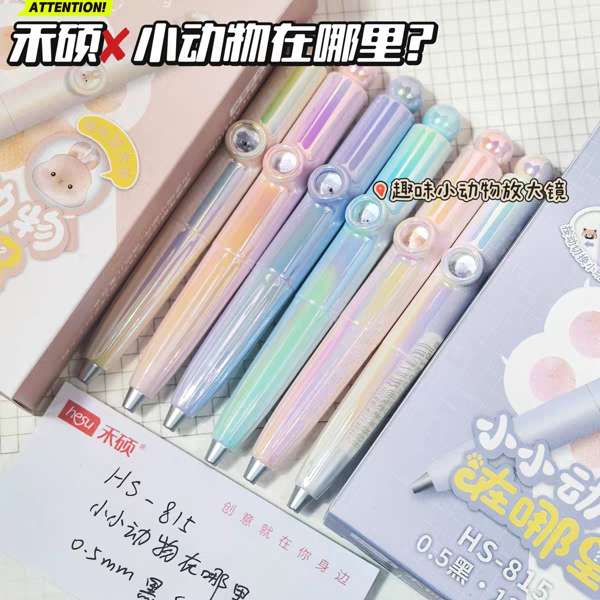 小小动物在哪里 禾硕815小动物按动中性笔小学生专用女生女孩高颜值速干刷题笔手账黑色水笔可爱卡通玩具笔